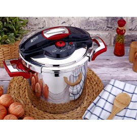 9 LT 18/10 Cr-Ni paslanmaz çelik gövde ve kapaklar. Üç kat kapsül taban. Parlaklığını koruyan özenle polisajlanmış dış yüzeyler. Ergonomik olarak tasarlanmış kulp ve kapaklar. İndüksiyon dahil her türlü ocak üzerinde